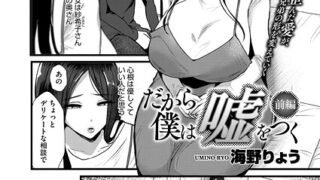 エロ漫画 【最大90%オフ】だから僕は嘘をつく 前編 ▶ 今すぐ無料試し読みする 夫や家族から不妊を責められてしまった妻。検査では異常なしとの診断だったが、夫と家族から赤ちゃんができないのは女のせいと信じ込まされている妻は、行き詰まって整体師をしている夫の弟に妊活マッサージをお願いすることに。... 2025.11.30 エロ漫画コアマガジン(雑誌)だから僕は嘘をつく人妻・主婦単話寝取り・寝取られ・NTR巨乳海野りょう